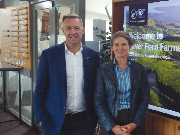 The second event in the Silver Fern Farms ‘Pasture to Plate Roadshow’ landed in Feilding last week, headed by chair and King Country farmer, Anna Nelson, and chief executive Dan Boulton.
