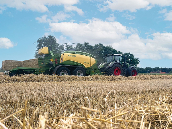 Combining maximum baling density, enormous throughputs, intelligent technology with maximum operator comfort, alongside ease of maintenance and durability, key improvements include a hydraulic starter aid, the proven EasyFlow Active pick-up for cleaner crop collection and Krone’s patented V-knotter system, which ties bales securely without leaving twine residue.