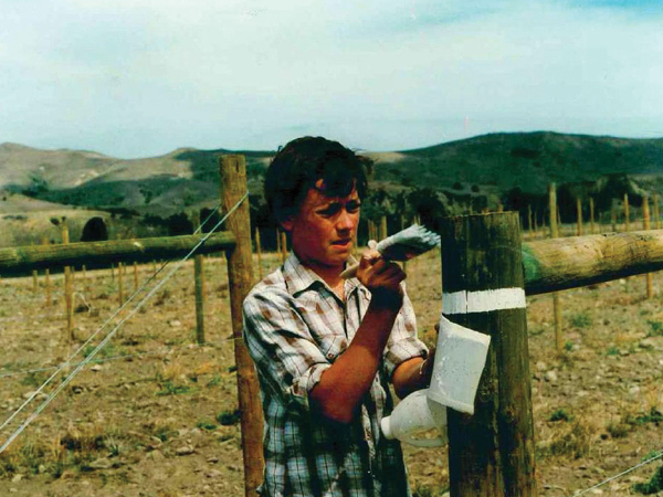 Ed Donaldson painting vineyard posts in 1987. Ed Donaldson painting vineyard posts in 1987.