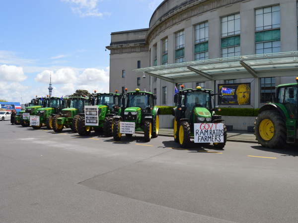 About 500 protestors turned up in their tractors and utes at Auckland’s Domain as part of the Groundswell protest.