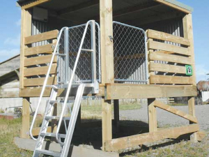 The loader, with a 2.4 x 3m footprint and 3m height, is designed to hold 17-25 calves, depending on breed/size. It has a wooden non-slip deck that drains, and a Colorsteel roof and side cladding to keep wind and rain at bay.
