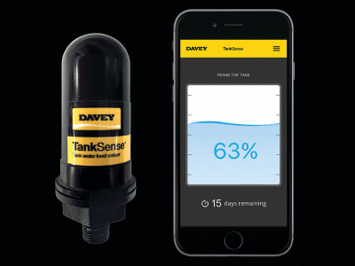 Davey’s new TankSense allows real-time monitoring of tank levels; it plumbs into the delivery feed from the tank with a single ¼-inch BSP fitting.
