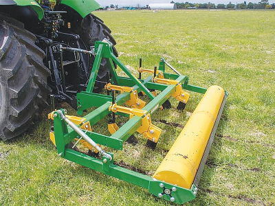 In operation, depth control is by a full-width flat roller assembly fitted with a scraper that also levels and firms the surface after use.