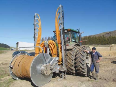 Malcolm says the Slurryquip system can be extended at any time. “For example we can set up a basic unit with about 800m of hose for no more than $100,000, so a dairy farmer or contractor can lease a basic system for a little over $20,000 per season. Then as time or funds permit you can add to it, i.e. more hose, GPS systems for proof of placement, etc.