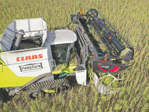The harvesting machine is a mix of a combine and a forage harvester, with two harvesting heads at the front, says Craig Carr, the managing director of Carrfields and chairman of NZ Yarn’s parent company Carrfields Primary Wool.