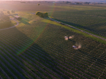 Harvesters weighing fruit in situ, digital dashboards with real time data, live map scheduling, and a sonic bird scarer cruising on a robot.